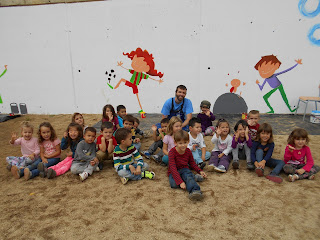 A la tarda, quan falten pocs minutets per a que els infants marxin a casa, ells sols s'organitzen i juguen per grups a "Zapatito blanco, zapatito azul". És una cançó que no l'hem après a l'escola sinó que els nens que se la sabien els hi han ensenyat als seus companys. Dóna goig veure com s'organitzen tot sols!